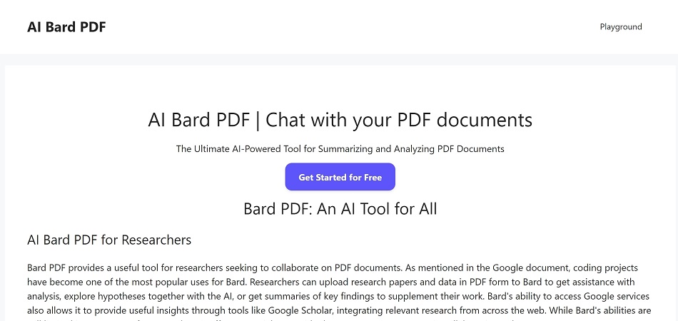 The manner in which you collaborate with PDFs is completely changed by BARD PDF. Furnish a PDF's internet connection with BARD PDF and it promptly gets what's inside. Overview the PDF, pose inquiries about its substance, or converse specifically with the record. Attempt it today to perceive how it makes a difference.